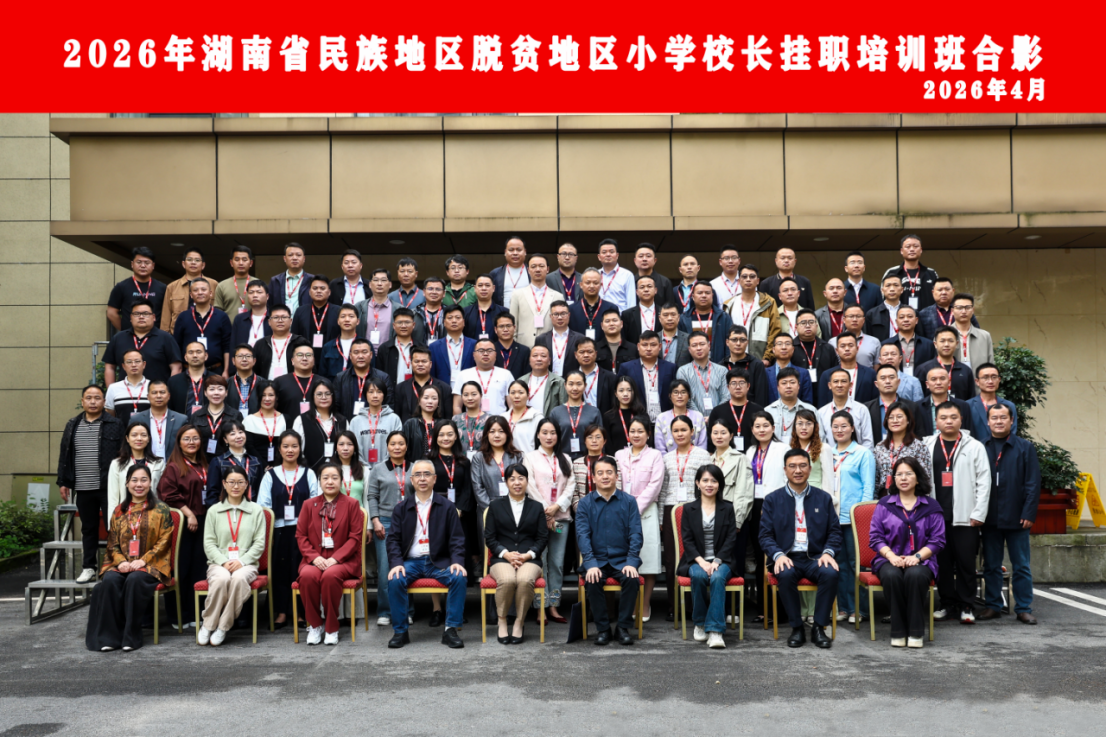 4月17日上午,2026年湖南省民族地区脱贫地区小学校长挂职培训班在我校开班。湖南省教育厅民族教育处处长祁怀好、一级主任科员康颖,湖南省教育管理干部培训办公室常务副主任康洪、副主任骆劲华出席开班仪式。